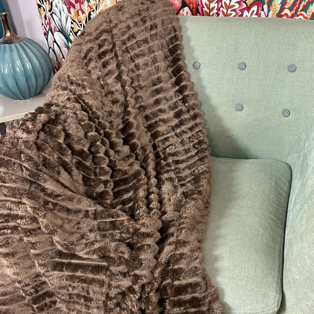 Gruby koc tłoczony o wymiarach 160x200 cm w eleganckim brązowym kolorze to doskonałe połączenie stylu i funkcjonalności. Jego miękka i przyjemna w dotyku mikrofibra zapewnia ciepło oraz komfort, co czyni go idealnym wyborem na chłodne wieczory. Tłoczony wzór w pasy dodaje mu nowoczesnego charakteru, a klasyczny odcień brązu świetnie wpisuje się w różnorodne style wnętrz.