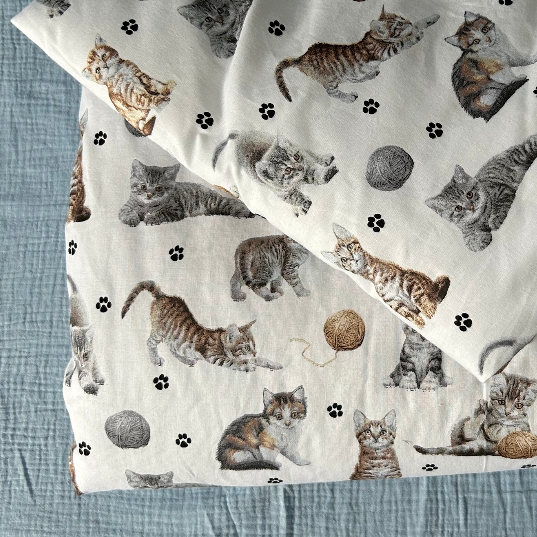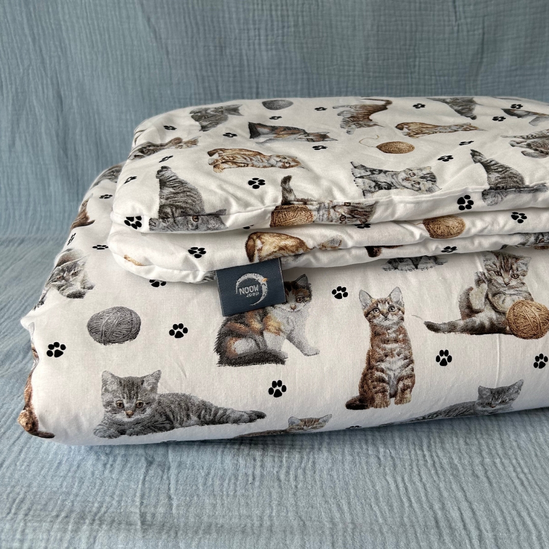 Stwórz swojemu dziecku idealne warunki do snu dzięki kompletowi pościeli Kotki. Kołderka o wymiarach 100x135 cm oraz poduszka 40x60 cm doskonale sprawdzą się zarówno w łóżeczku, jak i w przedszkolu czy żłobku. Wykonana z delikatnej, 100% bawełny, jest miękka i bezpieczna dla skóry dziecka, a antyalergiczne, silikonowe wypełnienie zapewnia lekkość i odpowiednią wentylację, co gwarantuje spokojny sen każdej nocy.