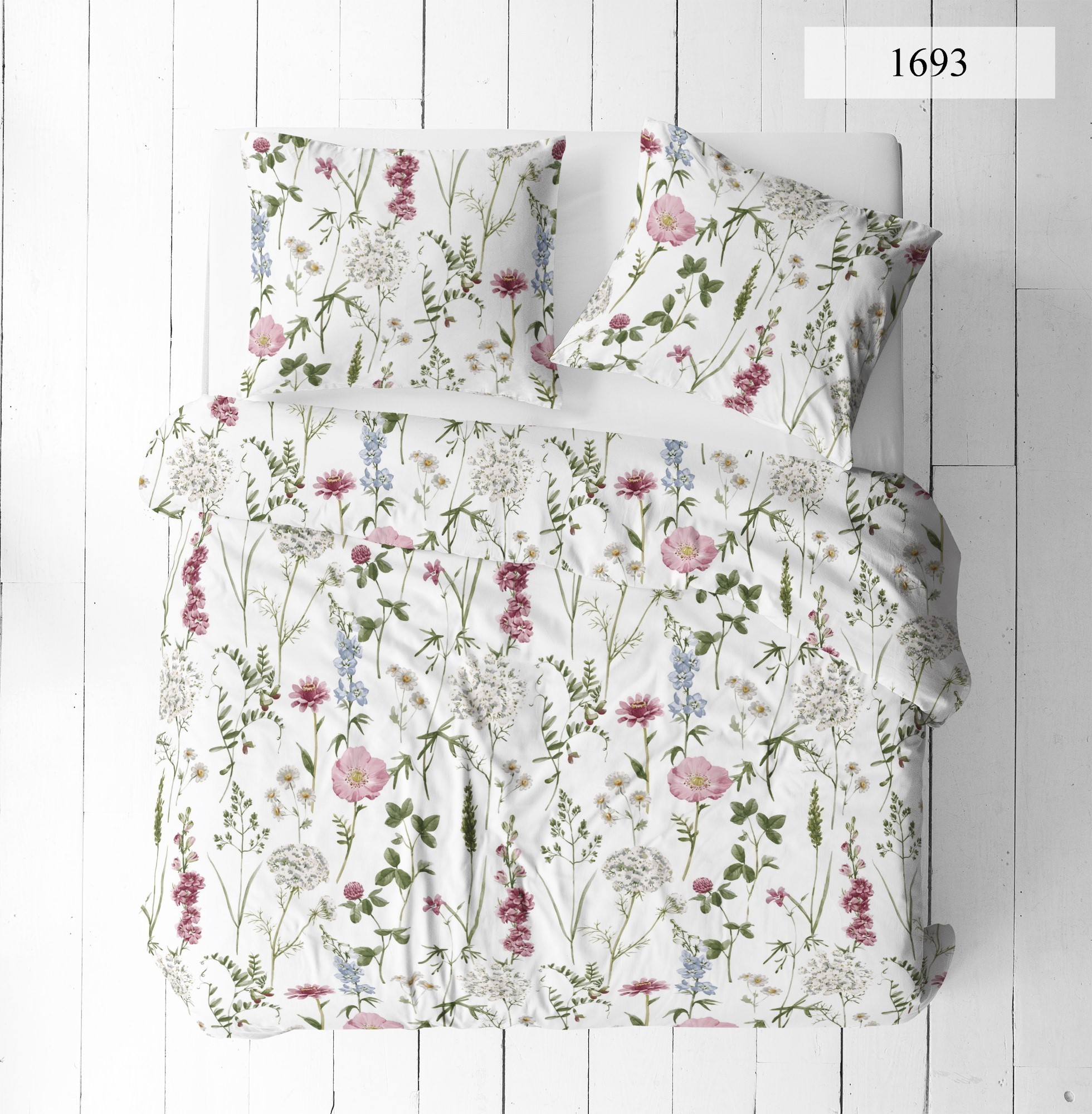 Komplet wykonany z wysokiej jakości, naturalnej bawełny, przyjaznej dla skóry i trwałej w użytkowaniu. Piękny, kwiatowy wzór nada sypialni lekkości i świeżości. Produkt polski – gwarancja jakości i starannego wykonania.