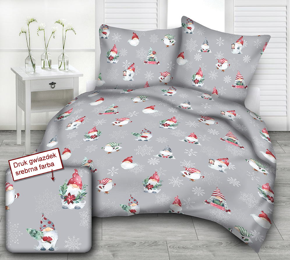 Strona główna » Pościel » Pościel Bawełniana » Komplet Pościeli z Bawełny 100% 160x200 2x70x80 mikołaj gwiazdka na szarym