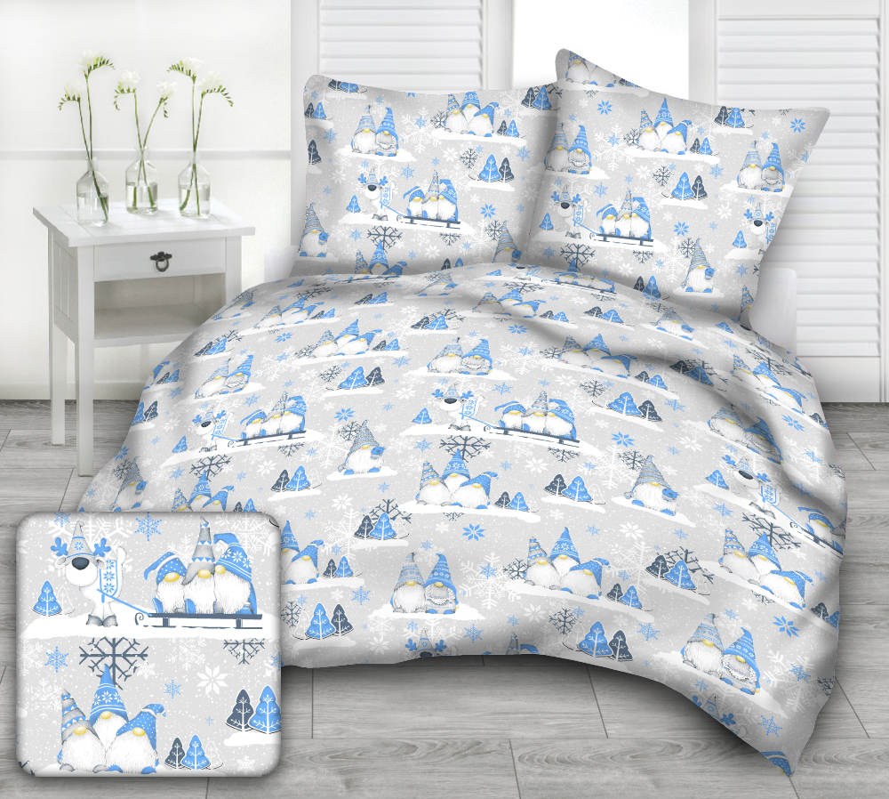 Strona główna » Pościel » Pościel Bawełniana » Komplet Pościeli z Bawełny 100% 160x200 2x70x80 niebieskie krasnale i skrzaty