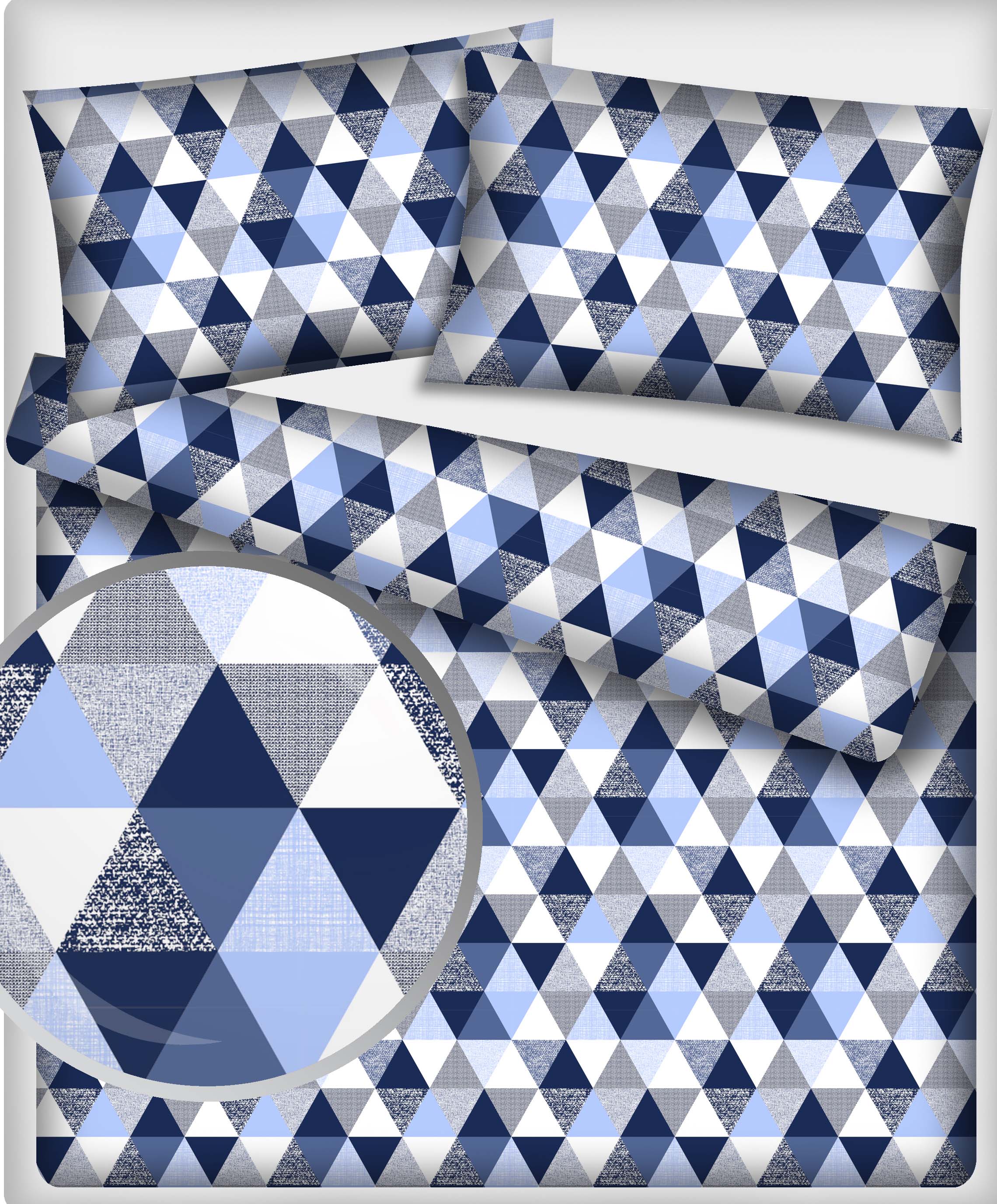 Strona główna » Pościel » Pościel Bawełniana » Komplet Pościeli z Bawełny 140x200 niebieskie trójkąty duże