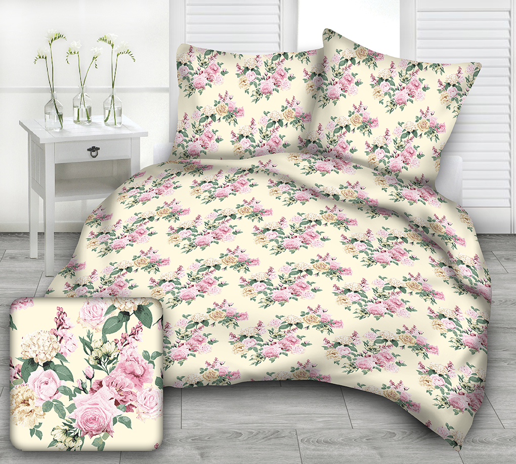 Strona główna » Pościel » Pościel Bawełniana » Komplet Pościeli z Bawełny 160x200 bukiety kwiatów ecru