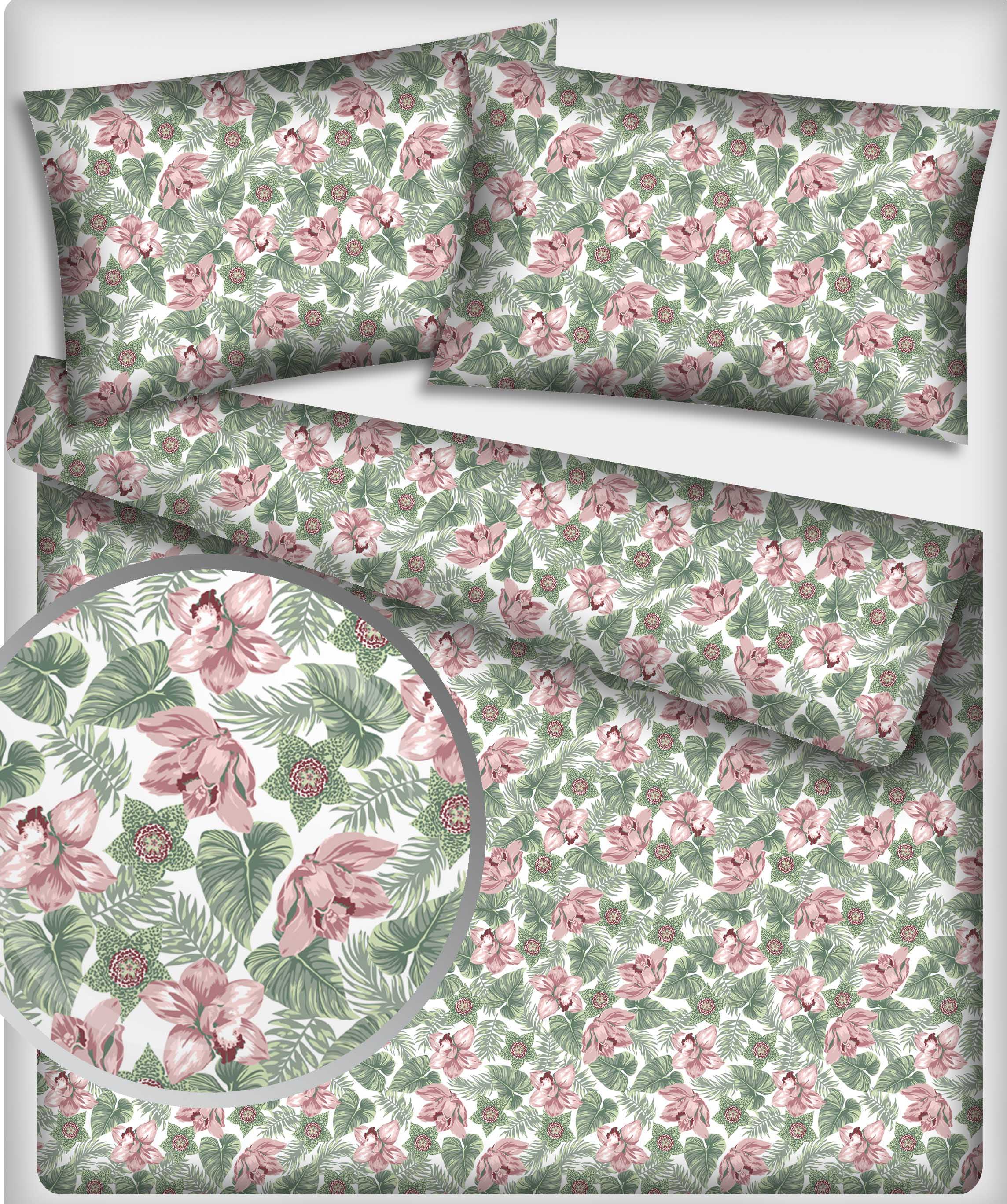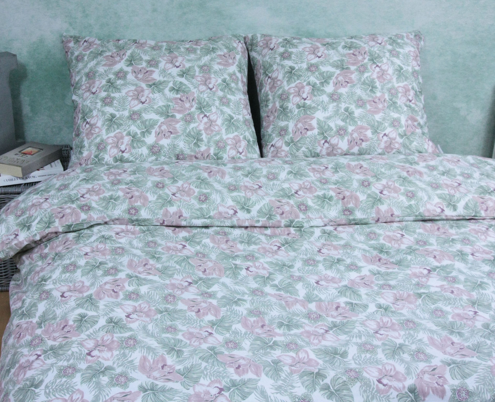 Komplet Pościeli z Bawełny 160x200 clematis miętowyKomplet Pościeli z Bawełny 160x200 clematis miętowy