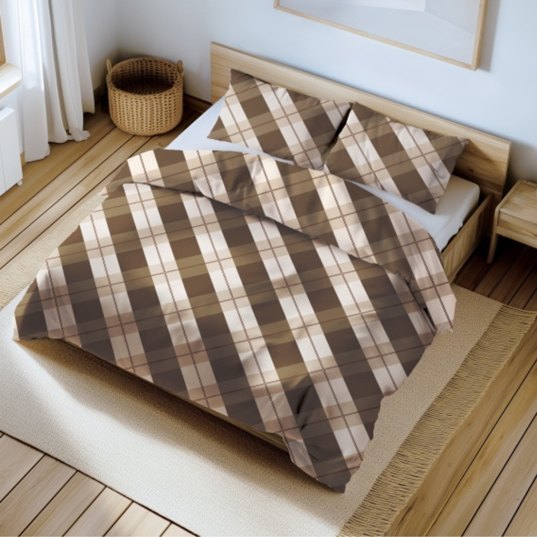 Pościel z bawełny w kratę brązowąWzór pościeli w kratę