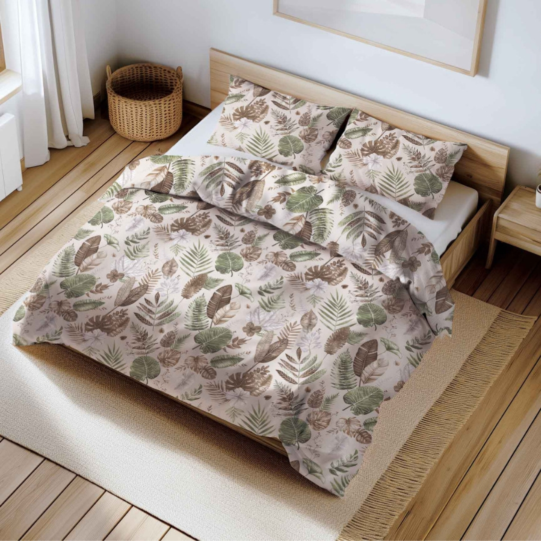 Stylowa pościel bawełniana w odcieniu beżu z delikatnym motywem liści to idealne rozwiązanie dla osób ceniących klasyczny design i komfort snu. Wykonana z 100% bawełny premium, jest wyjątkowo miękka, przewiewna i przyjazna dla skóry. Dzięki gramaturze 140 g/m² doskonale sprawdzi się o każdej porze roku, gwarantując spokojny sen.