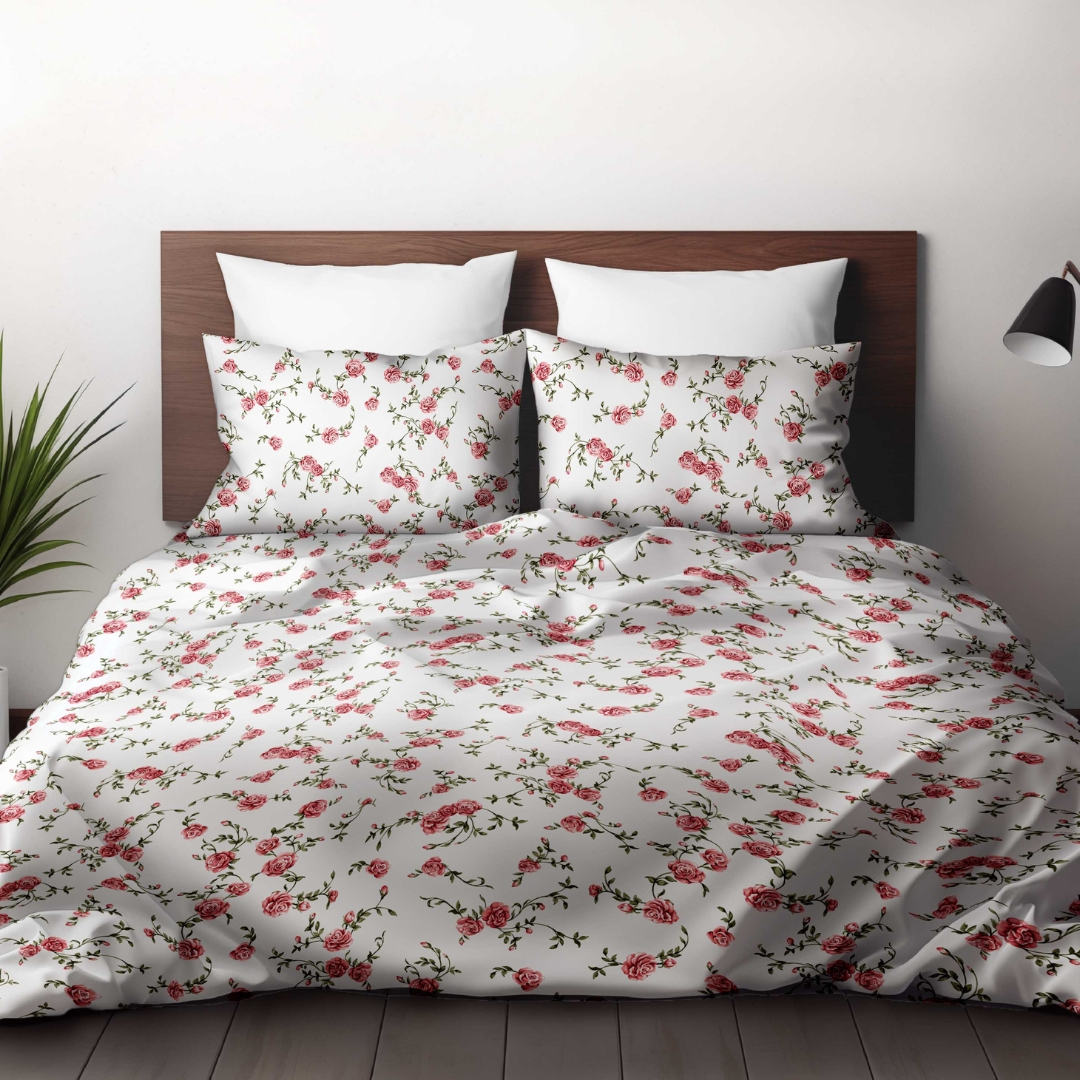 Pościel bawełniana 160x200 w różyczki to idealny wybór dla osób ceniących subtelne i eleganckie wzory. Jasne tło zdobią drobne róże w odcieniach czerwieni, nadając wnętrzu romantyczny i przytulny charakter. Pościel doskonale komponuje się z klasycznymi i nowoczesnymi aranżacjami sypialni.