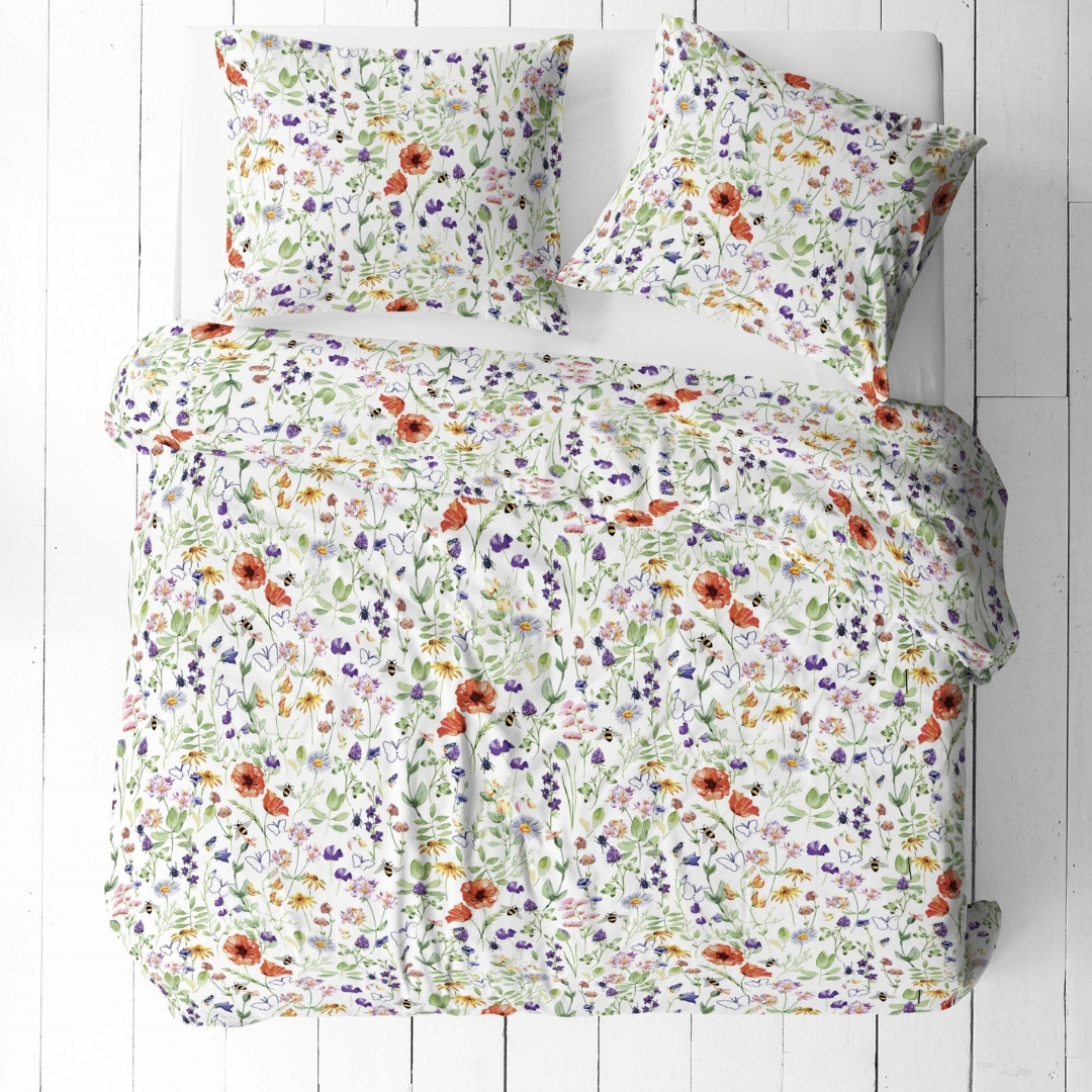 Komplet pościeli bawełnianej w rozmiarze 160x200 w delikatne polne kwiaty. Wykonany z wysokiej jakości bawełny, zapewnia komfort użytkowania i trwałość.