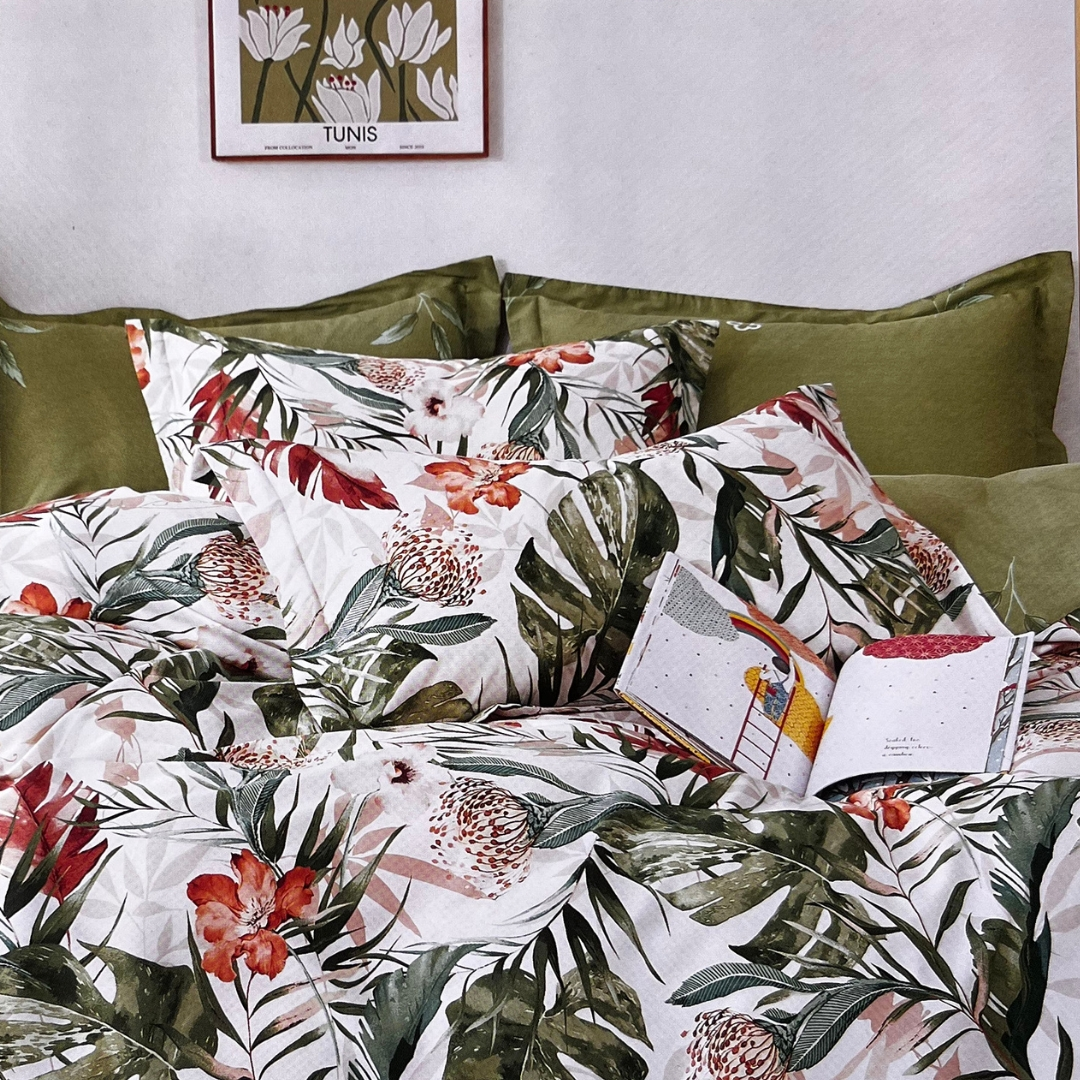 Pościel satyna bawełniana 200x220 Tropikalne Liście