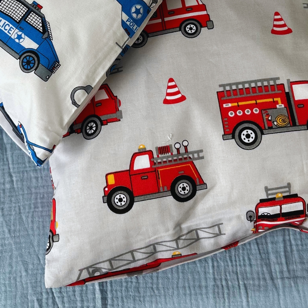 Poszewka na jaśka 40x40 Straż Pożarna to idealna propozycja dla małych fanów dzielnych strażaków i ich imponujących pojazdów. Wykonana z wysokiej jakości, miękkiej bawełny, poszewka zapewnia komfortowy sen, a jednocześnie jest bezpieczna dla delikatnej skóry dziecka. Wzór z pojazdami straży pożarnej wprowadzi do pokoju dziecięcego dynamiczny i pełen przygód klimat.
