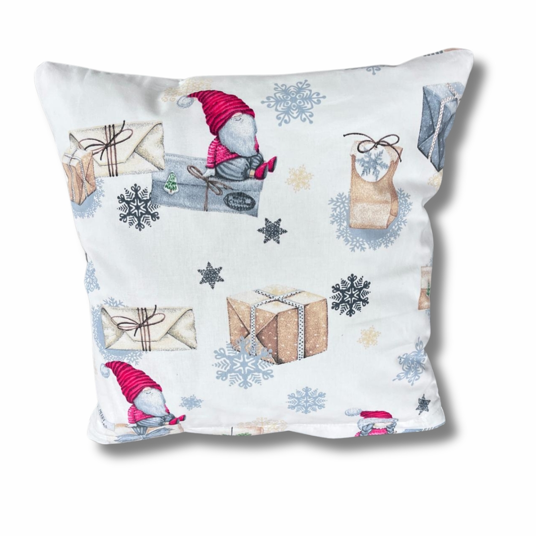 Świąteczna poszewka na poduszkę o wymiarach 40x40 cm to świetny sposób na wprowadzenie radosnej, bożonarodzeniowej atmosfery do Twojego wnętrza. Wykonana z miękkiej i trwałej bawełny, zapewnia komfort użytkowania i doskonale sprawdzi się zarówno w salonie, jak i w sypialni czy pokoju dziecięcym. Jasne tło poszewki zdobią urocze motywy małych Mikołajów, skrzatów i prezentów, które podkreślają świąteczny nastrój.